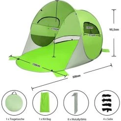 - Mehr Zubehör und gute Stabilität: Auf der Unterseite von dem Strandzelt befinden sich 4 befüllbare Sandsäcke, die verhindern, dass das Zelt vom Wind weggeblasen wird. Darüber hinaus ist das Strandzelt mit 4 Seilen und 8 Bodennägeln ausgestattet, um die Stabilität und den Windwiderstand weiter zu verbessern.