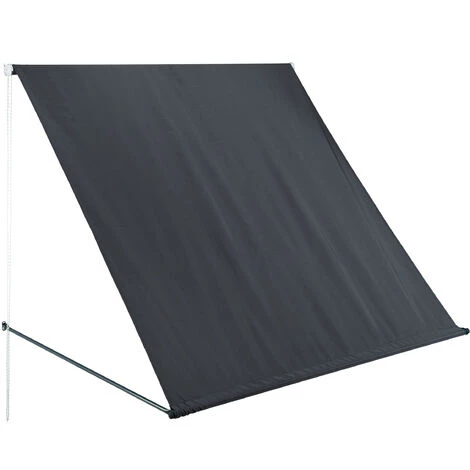 Die Fallarmmarkise eignet sich hervorragend zur Beschattung von Fenstern und Balkonen und gewährt gleichzeitig eine gute Sicht nach außen. Die Sonnenmarkise besteht aus robustem, wasserabweisendem Polyester und bietet einen wirksamen UV-Schutz, sodass Du Dir um blendendes Sonnenlicht oder gefährliche UV-Strahlung keine Gedanken machen musst. Mithilfe des Seilzugs lässt sich die Sonnenschutzmarkise auf die gewünschte Länge ausfahren.
