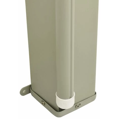 Der Sichtschutz besteht aus UV-beständigem und reißfestem Polyester. Die Kassette wird in vertikaler Position auf einem stabilen Stahlsockel montiert, sodass sich die Seitenmarkise leicht herausziehen lässt. Die Markise verfügt zudem über eine automatische Rückrollfunktion.