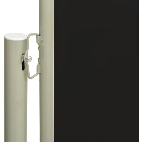 Der Sichtschutz besteht aus UV-beständigem und reißfestem Polyester. Die Kassette wird in vertikaler Position auf einem stabilen Stahlsockel montiert, sodass sich die Seitenmarkise leicht herausziehen lässt. Die Markise verfügt zudem über eine automatische Rückrollfunktion.