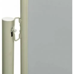 Der Sichtschutz besteht aus UV-beständigem und reißfestem Polyester. Die Kassette wird in vertikaler Position auf einem stabilen Stahlsockel montiert, sodass sich die Seitenmarkise leicht herausziehen lässt. Die Markise verfügt zudem über eine automatische Rückrollfunktion.