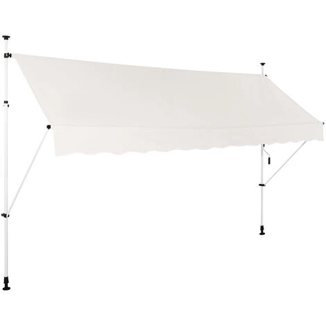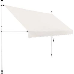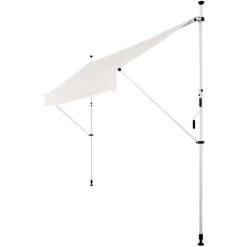 Im Vergleich mit fest installierten Markisen sichern Sie sich mit diesem Modell mehrere Vorteile. Sie bringen diese Markise im Handumdrehen an. Der wesentliche Schritt besteht darin, die beiden Teleskopstangen zwischen Boden und oberen Befestigungspunkten anzubringen. Die Länge der Teleskopstangen passen Sie mit minimalem Aufwand an. Nach dem Lockern der Schrauben sind sie problemlos aus- und einziehbar. Anschließend stellen Sie den Neigungswinkel ein, indem Sie die beiden Ausfallarme entsprechend verlängern oder verkürzen. Diese einfache Montage und Bedienung sind nennenswerte Pluspunkte. Sie entgehen unnötiger Arbeit, zudem beschädigen Sie Ihr Gebäude nicht. Darüber hinaus setzen Sie diese Klemmmarkise vielseitig ein. So können Sie diese im Campingurlaub für Ihr Wohnmobil nutzen, nach der Heimkehr wieder als Terrassen- oder Balkonmarkise.