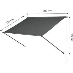 Der Bezug der Seitenmarkise besteht aus 100% Polyester (180g/m², PU-beschichtet). Das robuste Material ist wasserabweisend sowie UV-beständig und lässt sich mit Wasser und milder Seifenlauge reinigen.