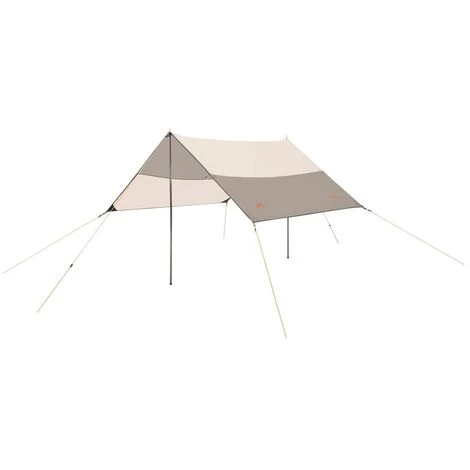Mit den zwei robusten, senkrechten Stahlstangen mit einer Höhe von 1,5 Metern lässt sich das Zelt einfach aufstellen und flexibel einsetzen. Die Mittelnaht führt am First entlang, und alle acht für die Abspannseile vorgesehenen Gewebeschleifen sind zusätzlich verstärkt, um maximale Festigkeit und Strapazierfähigkeit zu bietet.