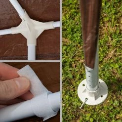 Bitte beachte, dass der Pavillon bei Sturm oder sehr schlechter Wetterlage keinen Schutz bietet. In diesen Fällen solltest Du den Pavillon weder nutzen noch im Freien stehen lassen. Unter Umständen kann es sonst zu Beschädigungen am Pavillon kommen.