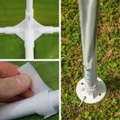 Bitte beachte, dass der Pavillon bei Sturm oder sehr schlechter Wetterlage keinen Schutz bietet. In diesen Fällen solltest Du den Pavillon weder nutzen noch im Freien stehen lassen. Unter Umständen kann es sonst zu Beschädigungen am Pavillon kommen.