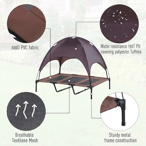 ERHÖHTER LUFTSTROM: Ein erhöhter Hundebettrahmen im Design eines Kinderbetts hebt Ihr Haustier vom Boden ab, sodass die Luft auf allen Seiten und darunter frei strömen kann. Erhöhtes Haustierbett, Hundebett, tragbar, Außen- und Innenbett, Zelt, Überdachung, Instant-Kaffee
