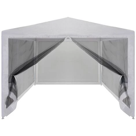 Das Partyzelt mit Seitenwänden aus Netzgewebe ist ideal für alle, die freie Sicht haben möchten, ohne bei Outdoor-Aktivitäten von Insekten gestört zu werden. Dieses Partyzelt ist ideal für eine Vielzahl von Outdoor-Veranstaltungen wie Hochzeiten, Partys, Grillpartys, Festivals, usw. Hergestellt aus strapazierfähigem, pulverbeschichtetem Stahl, ist dieses Partyzelt extrem langlebig. Die Dachabdeckung ist aus hochwertigem PE gefertigt und somit wasser- und UV-beständig. Das Zelt hat vier Netz-Seitenwände, die Sie vor lästigen Insekten schützen. Und eine der Seitenwände hat einen Eingang mit Reißverschluss für einen einfachen Zugang. Das Partyzelt ist mit dem mitgelieferten Montagezubehör einfach zu installieren. Hinweis: Dieser Artikel sollte NIEMALS bei rauen Wetterbedingungen, wie starkem Wind, Regenschauer, starkem Schneefall, Sturm, Hagel, usw., genutzt werden.