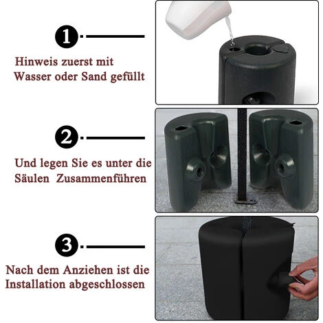 Ohne Werkzeug leicht zu montieren und durch den Wassereinlass leicht mit Wasser, Sand oder Kieselsäure zu füllen
