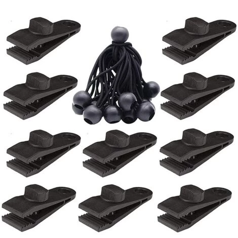 Planenclip und Bungee-Kordel Materialien und Größe: Planenclips sind aus strapazierfähigem Nylon gefertigt. Schnitt: 3,3 Zoll * 1 Zoll * 1,18 Zoll * 0,47 Zoll; Das Kugel-Bungee-Seil ist aus Kunststoff und strapazierfähigem Bungee-Seil. Schnitt : 5,1 Zoll * 1,06 Zoll * 0,59 Zoll