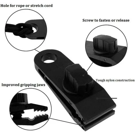 Clip für Planen: Das leistungsstarke Design der Greifbacken macht es stabiler. Das hintere Ende des Planenclips kann zum Schneiden an jedem handelsüblichen Bungee-Seil, Seil oder Stretchseil befestigt werden. Weit verbreitet: Tarp Clip Clamps sind ideal für Outdoor-Campingzelte, Markisen, Wohnwagen, Sonnenschirme, Planen, Markisen, Bootsabdeckungen, Decken