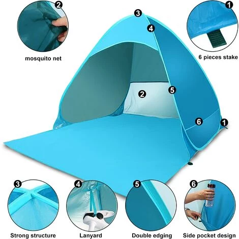 【UV-Sonnenschutz】: Das Strandzelt ist mit UPF 50+ UV-Schutzmaterial ausgekleidet, um Ihnen und Ihrer Familie den dringend benötigten Schutz vor den intensiven UV-Strahlen der Sonne zu bieten.