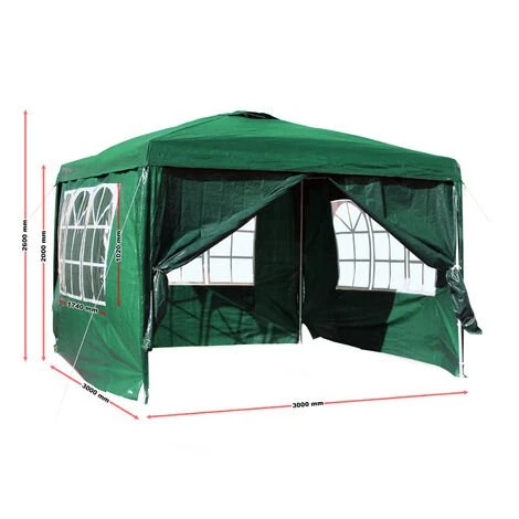 3x3m Pavillon mit abnehmbaren Seitenteilen, grün, faltbar, Fenster