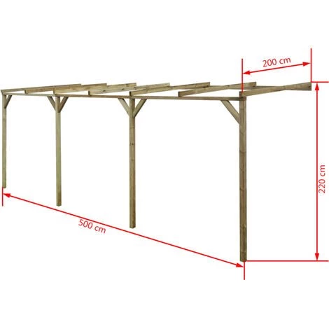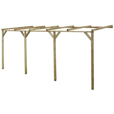 Mit dieser Anlehn-Pergola können Sie das Aussehen Ihres Hauses verbessern und einen dekorativen Verandabereich schaffen, wo Sie sich entspannen und Besuch empfangen können. Sie kann auch zur Überdachung von Essbereichen oder als Carport verwendet werden. Hergestellt aus hochwertigem, grün imprägniertem Kiefernholz, ist diese Anlehn-Pergola sehr robust, langlebig und verrottungsfest. Sie können das Dach mit Polycarbonat-Platten bedecken, wobei das Schrägdach der Pergola das Abfließen des Wassers ermöglicht. Die Montage ist einfach. Die Accessories/ Schrauben, die zur Befestigung an der Wand benötigt werden, sind allesamt nicht im Lieferumfang enthalten. Bitte beachten Sie, dass Holz ein Naturprodukt ist und es daher Unvollkommenheiten aufweisen kann.