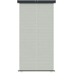 Diese einfache, jedoch stilvolle Seitenmarkise bietet Privatsphäre und schafft einen gemütlichen Ort. Sie schützt auch vor dem Wind und der tief stehenden Sonne, wodurch sie auch als Windschutz und Sonnenschutz dient. Die Blende ist aus UV-beständigem, reißfestem Polyester hergestellt. Die Aluminiumwalze sorgt für ein reibungsloses Abrollen. Sie verfügt über eine Selbstsperrfunktion, sodass sie an jeder Stelle angehalten werden kann. Die Markise durch einfaches Ziehen der unteren Dreiecksringe automatisch wieder in die Stahleinfassung eingefahren werden. Je nach Bedarf kann die Senkrechtmarkise sowohl an der Wand als auch an der Decke befestigt werden.